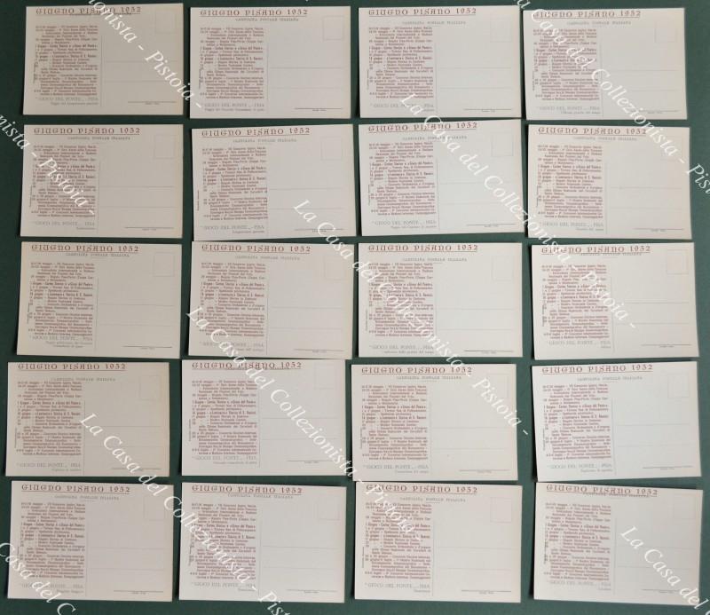 BELLONZI. GIOCO DEL PONTE, Pisa. Serie completa di 20 cartoline. Non viaggiate, anno 1935, ristampate sul retro per il giugno Pisano 1952. Perfetta conservazione eccetto minimi ingiallimenti. (Rif.D7597)