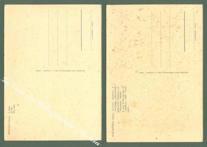 BIGANTI E. Due cartoline d'epoca formato grande: 1)Piediluco, Terni, il lago. 2) Acquasparta, Terni , Le Fonti. Non viaggioate, anni '50. Punti di ossidazione a retro. (Rif.D2317)