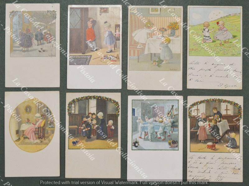 EBNER PAUL. 8 cartoline d'epoca diverse raffiguranti bambini, 7 viaggiate tra il 1923 e il 1927. (Rif.F5156)