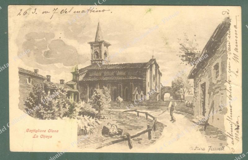 FERRARI ARTURO. Castiglione Olona, la chiesa. Cartolina d'poca viaggiata nel 1918