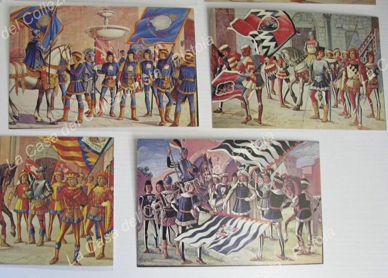 MARZI BRUNO. Le contrade di Siena, anno 1954, edizione Trabalzini. 15 (su 17) cartoline policrome