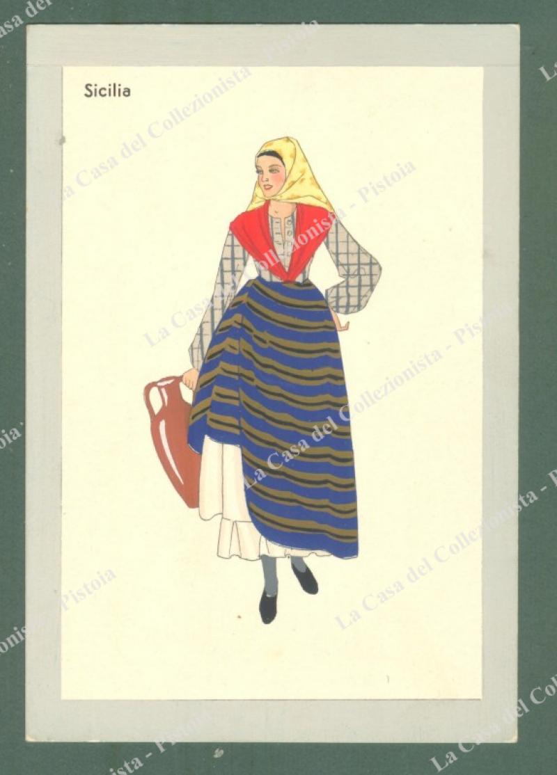 MESCHINI GIOVANNI. Ars Nova. SICILIA. Cartolina d'epoca dipinta a mano, anni '30