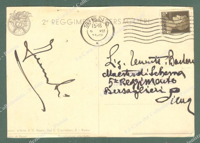 PISANI VITTORIO. 2° REGGIMENTO BERSAGLIERI. Cartolina d'epoca viaggiata nel 1935