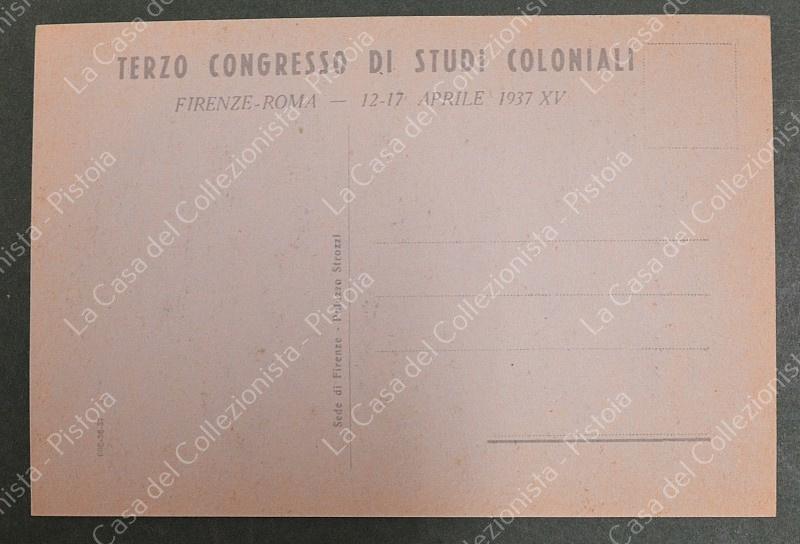 VENNA LUCIO. 3° CONGRESSO NAZ. DI STUDI COLONIALI. 1937. Cartolina d'epoca formato grande, non viaggiata. (Rif.F7110)