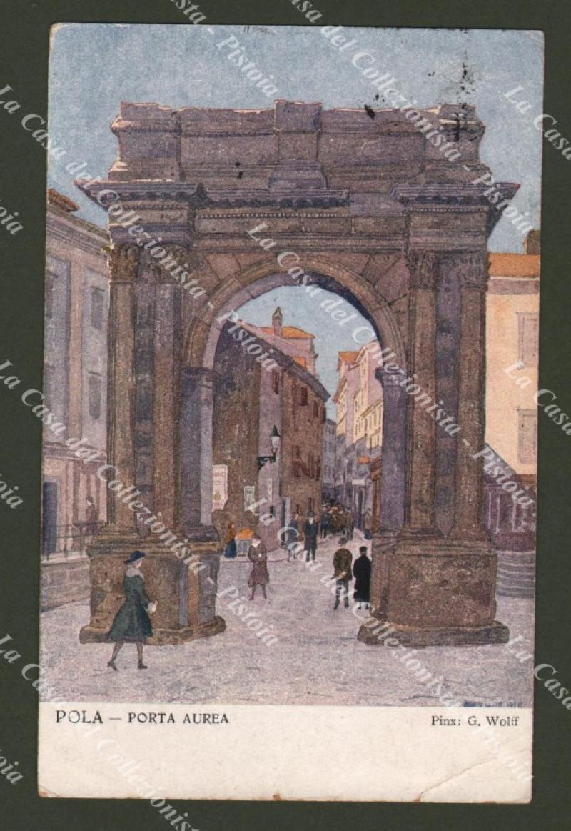 WOLFF G.. POLA, Porta Aurea. Cartolina d'epoca viaggiata nel 1920. Lieve piega. (Rif.F1266)