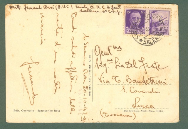 Campania. S. SEVERINO ROTA, Salerno. Cartolina d'epoca viaggiata nel 1942