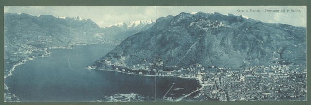Lombardia. COMO. Como e Brunate. Panorama del 1'° bacino. Cartolina doppia (cm 28x8,8) viaggiata nel 1921.
