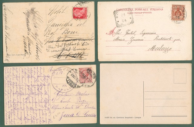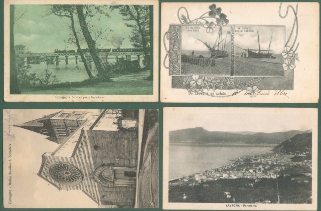 Liguria. LAVAGNA, Genova. Quattro cartoline d'epoca (tre viaggiate tra il 1904 e il 1933).