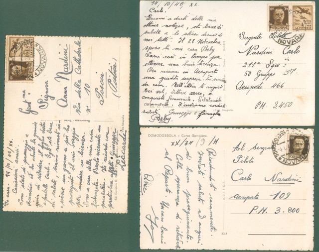 Piemonte. DOMODOSSOLA, Novara. Tre cartoline d'epoca formato grande, viaggiate nel 1942