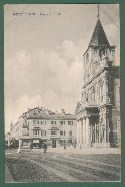 BORGOMANERO, Novara. Piazza Vittorio Emanuele II. Cartolina d'epoca viaggiata nel 1910.