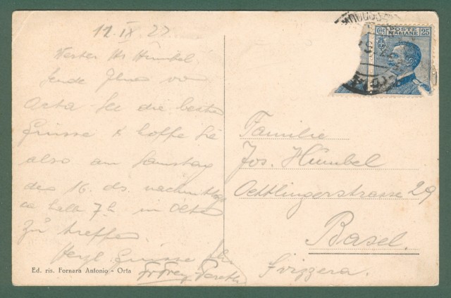 ARMENO, Lago d'Orta, Novara. Palazzo Comunale. Cartolina d'epoca viaggiata nel 1922. Un francobollo asportato. (Rif.C6873)