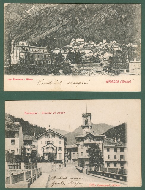 Piemonte. ROSAZZA, Novara. 2 cartoline d'epoca viaggiate nel 1904 e nel 1905. Ottima conservazione. (Rif.C6872)
