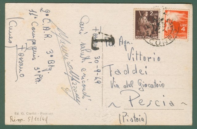 Piemonte. FOSSANO, Cuneo. Cartolina d'epoca viaggiata nel 1949.