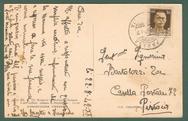 CEPARANA (Spezia). Via Vecchia. Cartolina d'epoca viaggiata nel 1942. Ottima conservazione. (Rif.C6678)