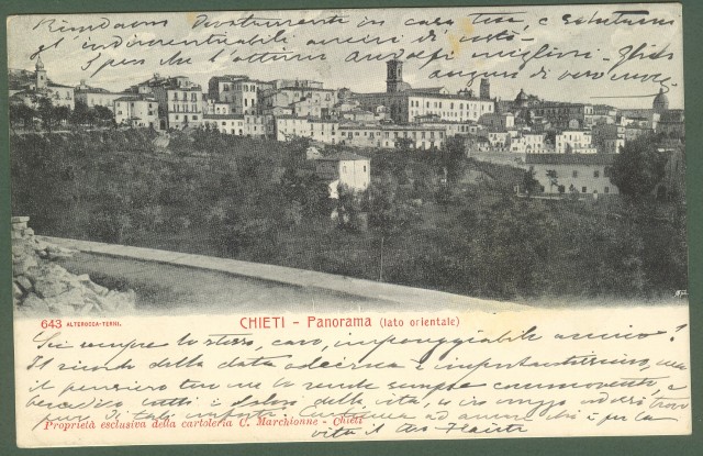 CHIETI. Panorama. Cartolina d'epoca viaggiata nel 1903. Ottima conservazione. (Rif.C3852)