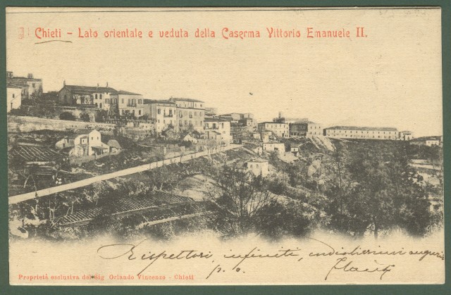 CHIETI. Lato orientale e veduta della Caserma Vittorio Emanuele. Cartolina d'epoca viaggiata nel 1903. Ottima conservazione. (Rif.C3842)