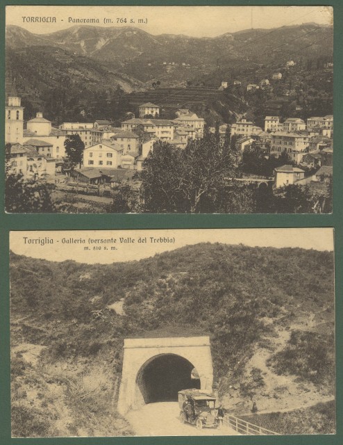 TORRIGLIA, Genova. Due cartoline d'epoca viaggiate nel 1917.