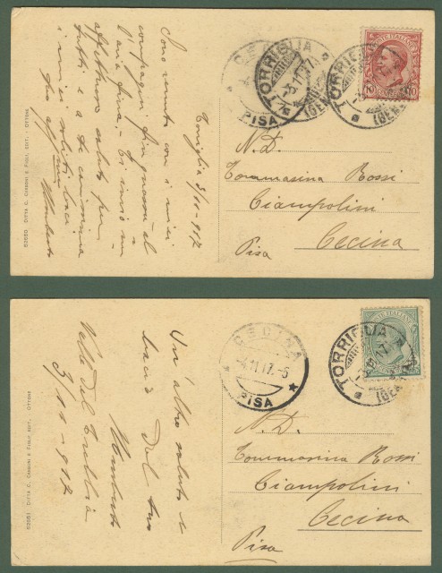 TORRIGLIA, Genova. Due cartoline d'epoca viaggiate nel 1917. Ottima conservazione. (Rif.C3534)