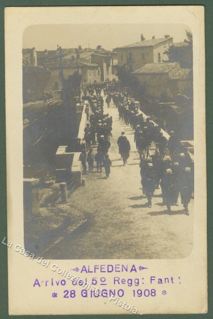 ABRUZZO. ALFEDENA (Aquila). Arrivo del 5'° Reggimento Fanteria, 28 Giugno. Bella cartolina fotografica dell'epoca