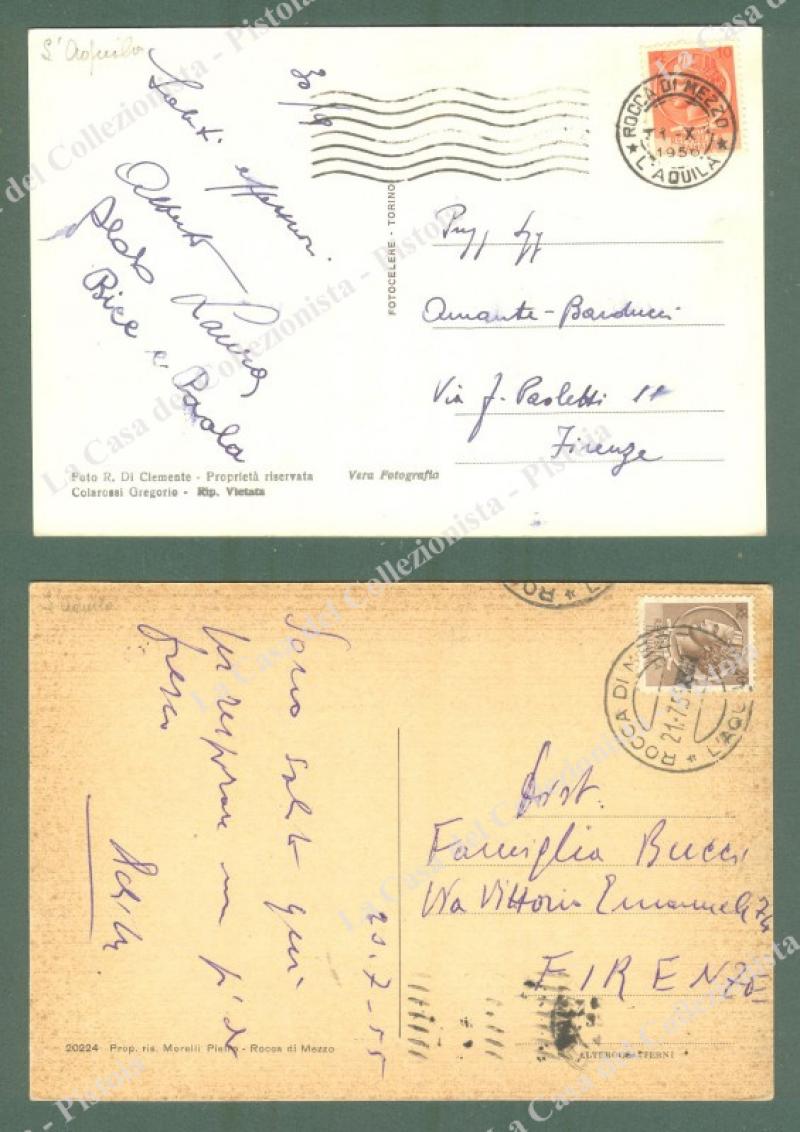 Abruzzo. ROCCA DI MEZZO, Aquila. 2 cartoline d'epoca formato grande, viaggiate tra il 1955-1956