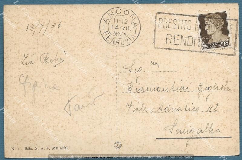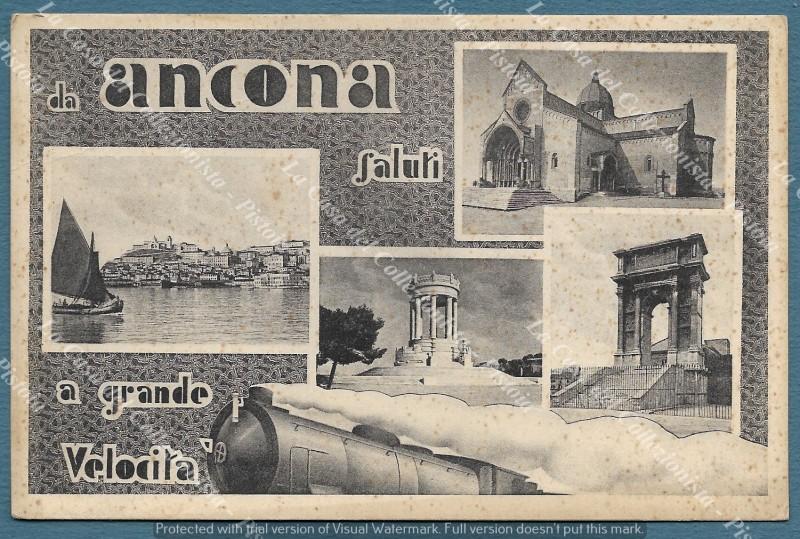 ANCONA. Saluti a grande velocità. Viaggiata nel 1936., formato piccolo (cm 14x9). (Rif.F5207)