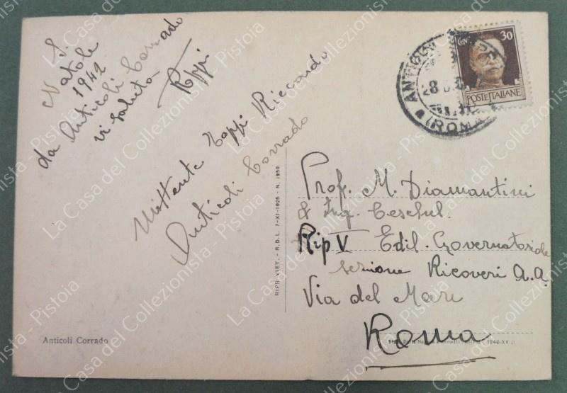 ANTICOLI CORRADO, Roma. Cartolina d'epoca formato grande, viaggiata nel 1942. (Rif.F7016)