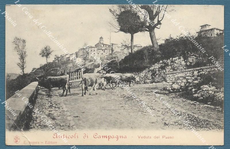 ANTICOLI DI CAMPAGNA, Fiuggi, Frosinone. Veduta a gruppo di buoi. Cartolina d'epoca viaggiata inizio 1900. Piega d'angolo. (Rif.F5340)