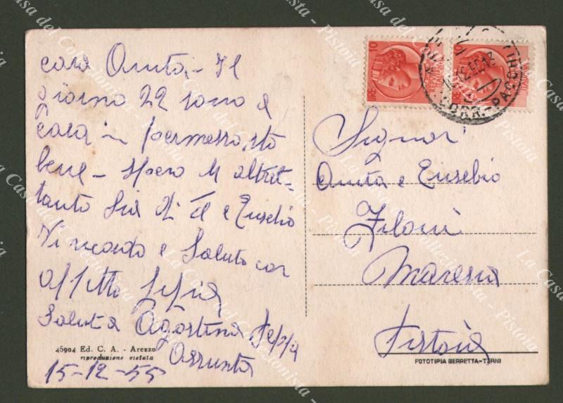 AREZZO. Saluti da. Cartolina d'epoca viaggiata nel 1955