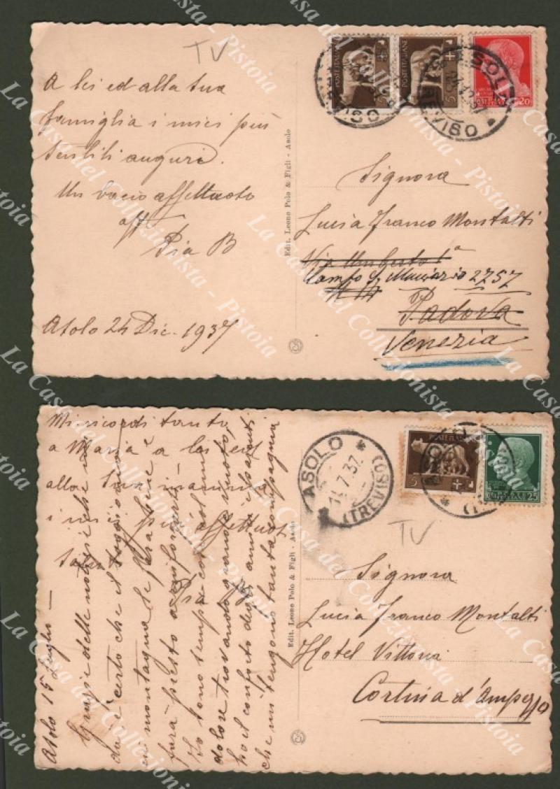 ASOLO, Treviso. 2 cartoline d'epoca formato grande, viaggiate nel 1937. (Rif.F1466)
