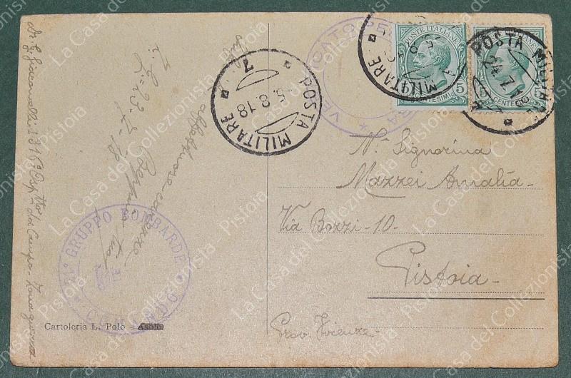 ASOLO, Treviso. Porta S. Caterina. Cartolina d'epoca viaggiata con Posta Militare 7 anno 1918. Nome cancellato per censura. Comando Gruppo Bombarde. (Rif.F7699)