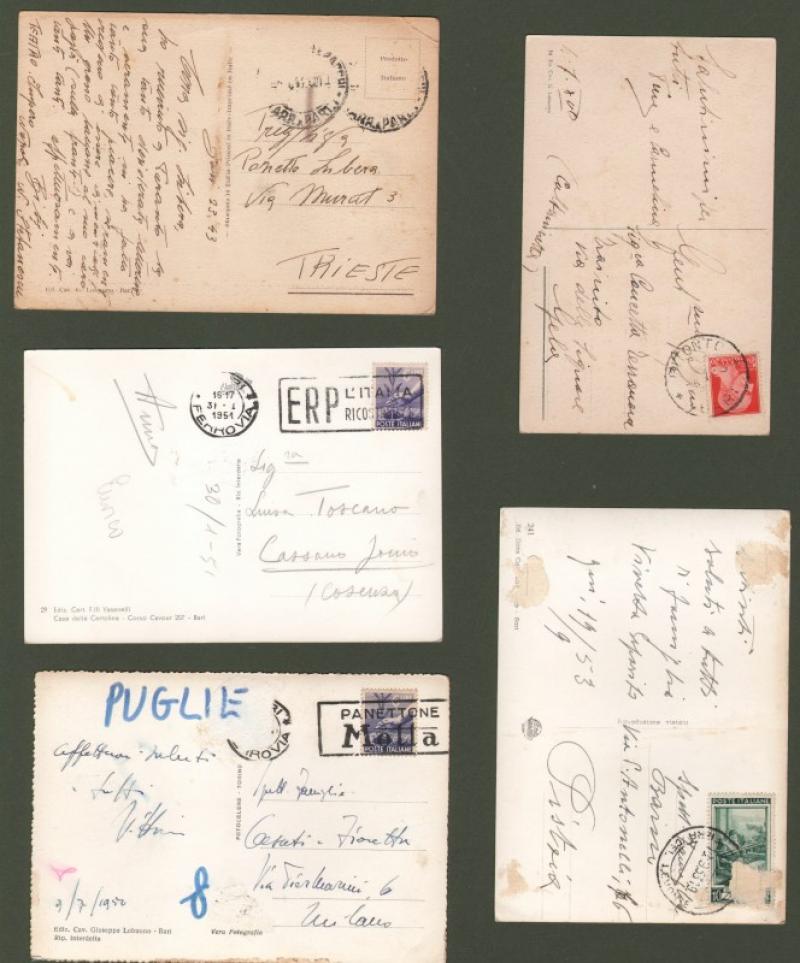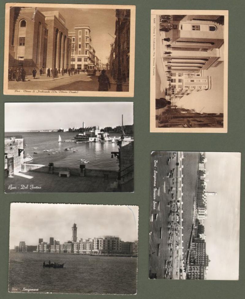 BARI. 5 cartoline d'epoca viaggiate 1938-1953. Lievi difetti. (Rif.F2011)