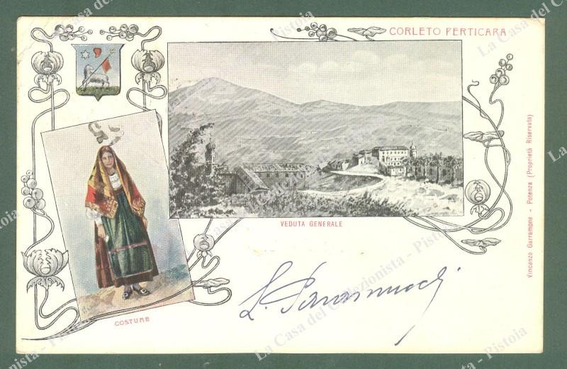 Basilicata. CORLETTO PERTICARA, Potenza. Panorama. Cartolina d'epoca viaggiata nel 1905.