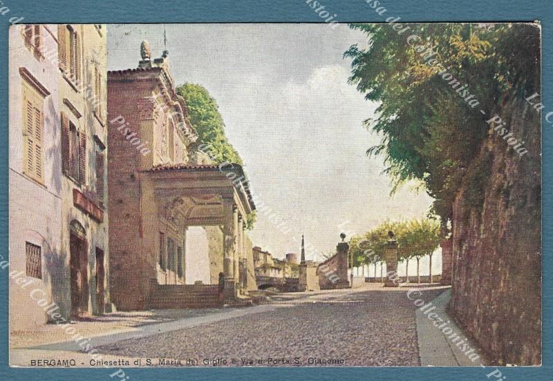 BERGAMO. Chiesa S.M. del Giglio e via Porta S.Giacomo. Cartolina d'epoca viaggiata