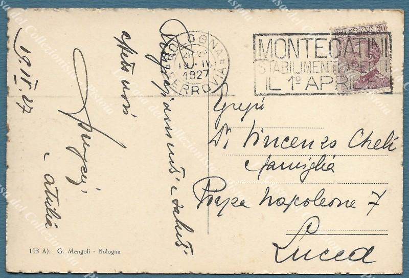 BOLOGNA SCOMPARSA. Via Rizzoli prima dell'allargamento vista dalle Due Torri. Viaggiata nel 1927. (Rif.F3397)
