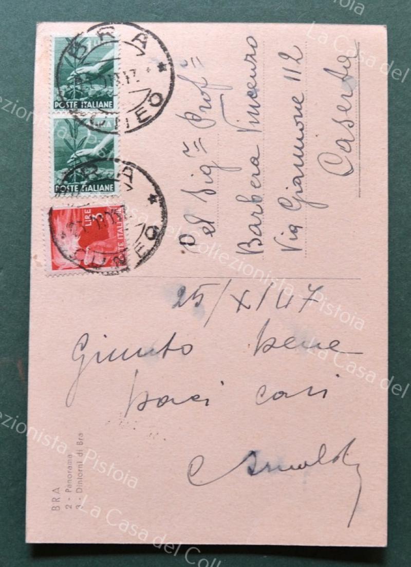 BRA, Cuneo. Panorama e dintorni. Cartolina d'epoca formato grande, viaggiata nel 1947. (Rif.F4272)