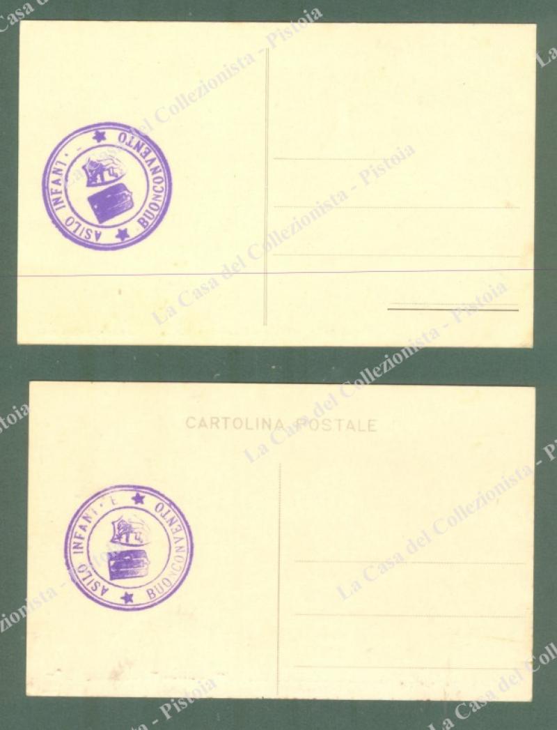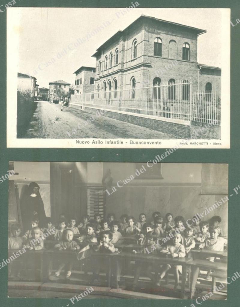 BUONCONVENTO, Siena. Nuovo Asilo Infantile. 2 cartoline d'epoca non viaggiata, circa 1920 con a retro il bollo dell'asilo. Ottima conservazione. (Rif.E3464)