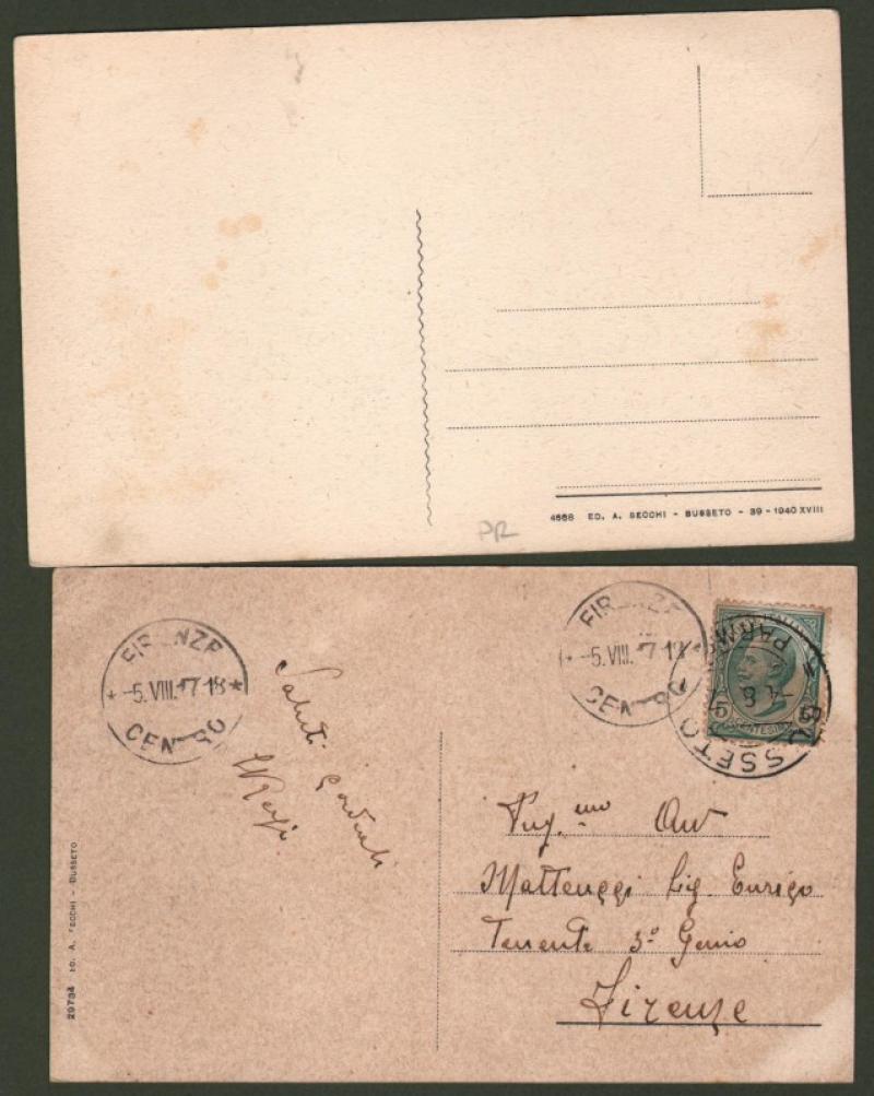 BUSSETO, Parma. 2 cartoline d'epoca (una viaggiata nel 1917, l'altra non viaggiata 1940). (Rif.F1997)