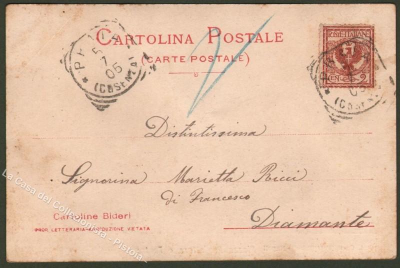 Calabria. COSENZA. Piazza Prefettura e Teatro. Cartolina d'epoca viaggiata nel 1905. Ottima conservazione. (Rif.D382)