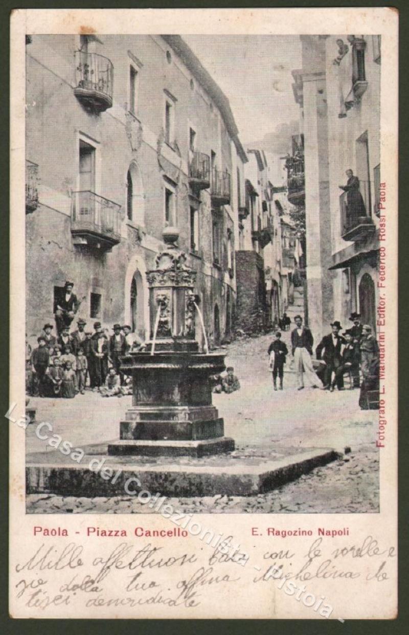 Calabria. PAOLA, Cosenza. Piazza Cancello. Cartolina d'epoca viaggiata nel 1904. Ottima conservazione. (Rif.D371)