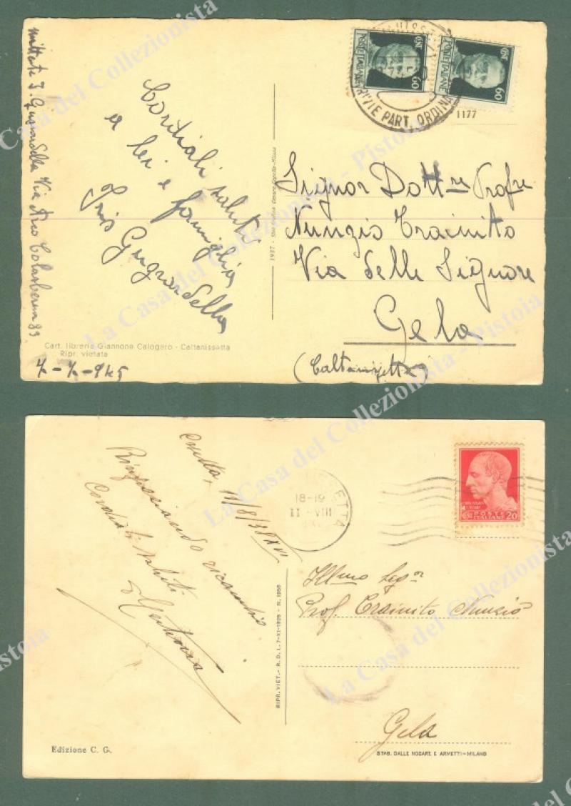 CALTANISSETTA. 2 cartoline d'epoca formato grande, viaggiate nel 1938 e 1945. (Rif.E2531)