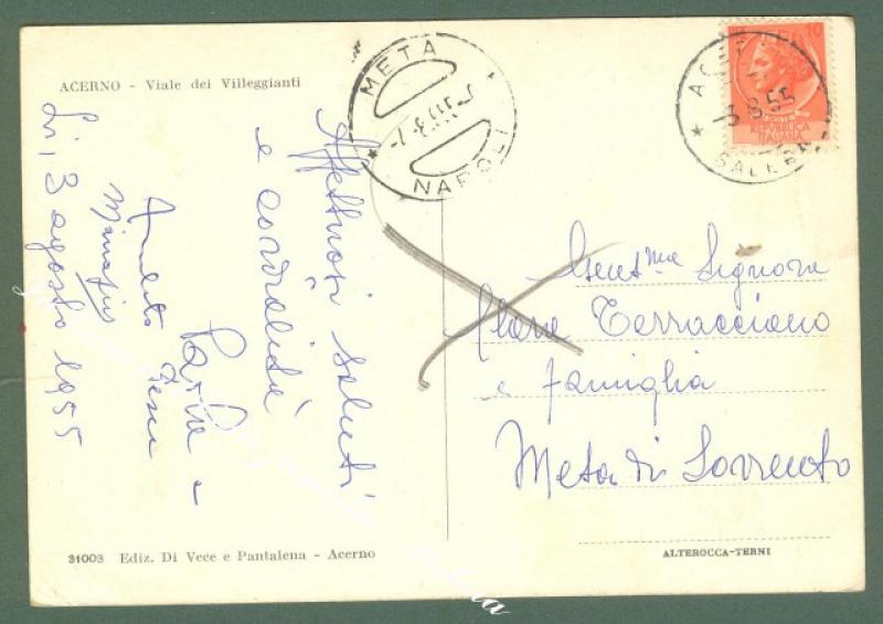 Campania. ACERNO, Salerno. Viale dei Villeggianti. Cartolina d'epoca viaggiata.