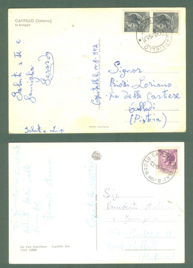 Campania. CAPITELLO, Salerno. Due cartoline d'epoca viaggiate