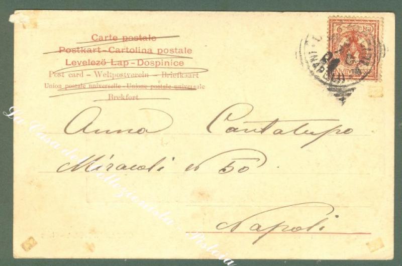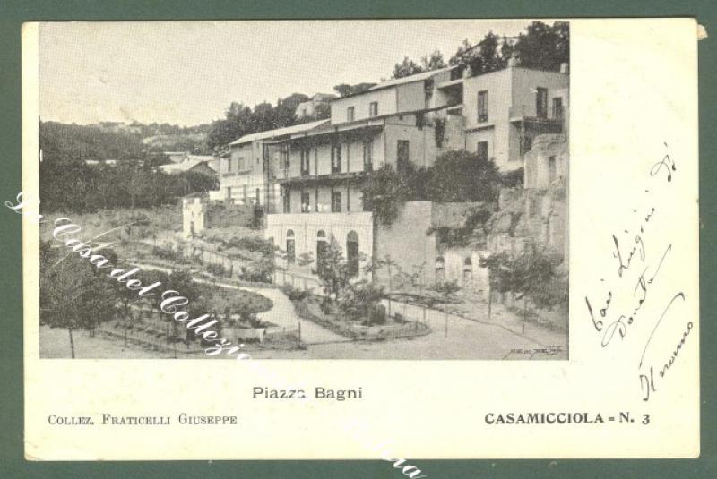 Campania. CASAMICCIOLA, Napoli. Piazza Bagni. Cartolina d'epoca viaggiata nel 1904. Piccole imperfezioni. (Rif.D1954)