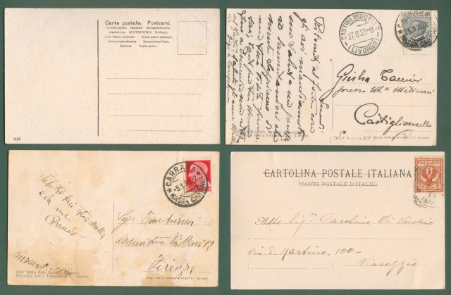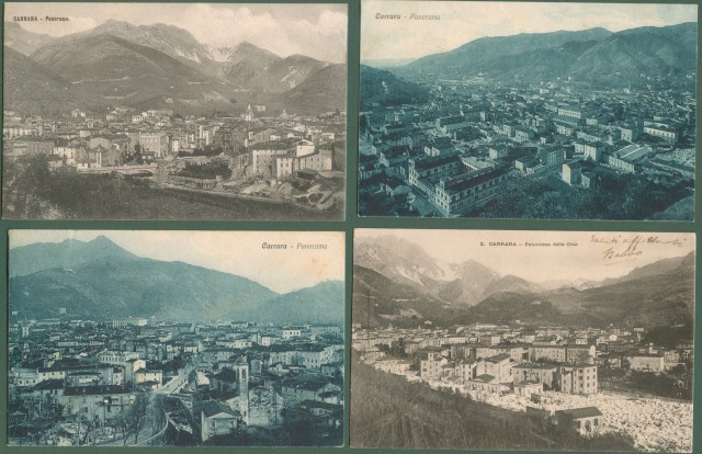 *CARRARA, cinque diversi panorami. Tre cartoline d'epoca viaggiate 1903, 1929, 1930.
