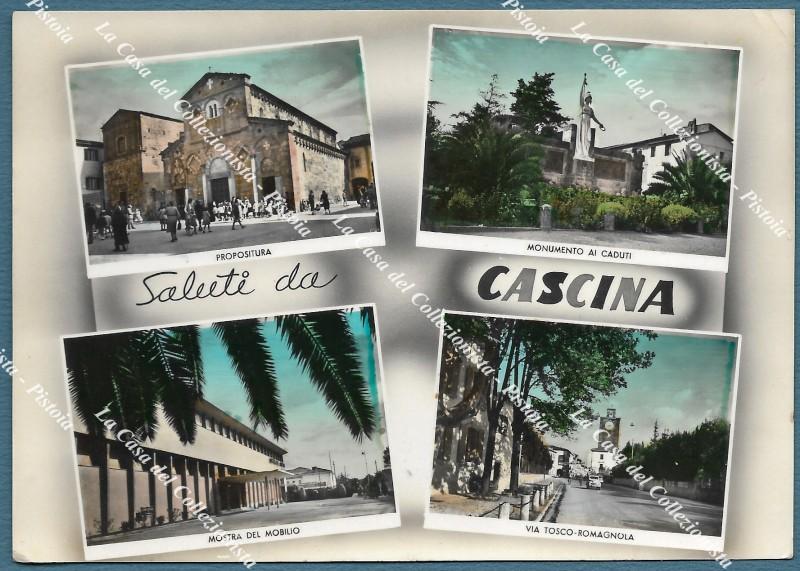 CASCINA, Pisa. Saluti da. Cartolina viaggiata nel 1957. Formato grande (cm 15x10,5). (Rif.F5834)