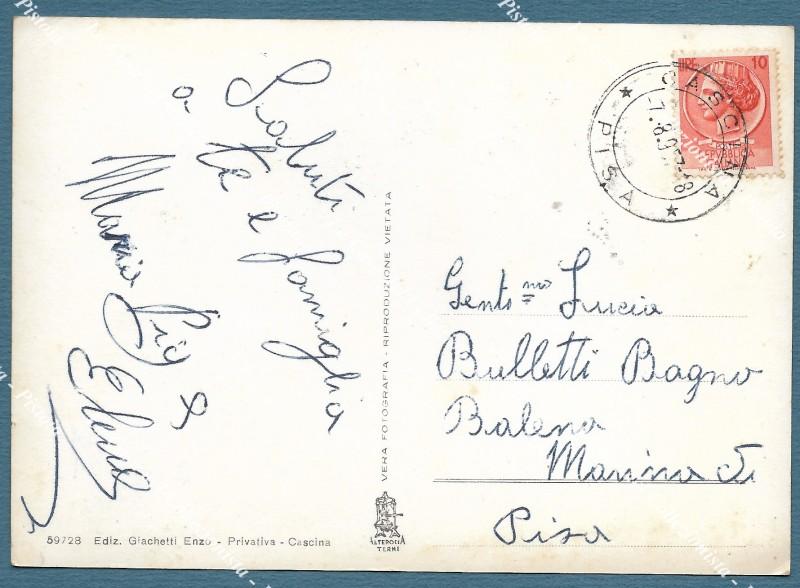CASCINA, Pisa. Saluti da. Cartolina viaggiata nel 1957.