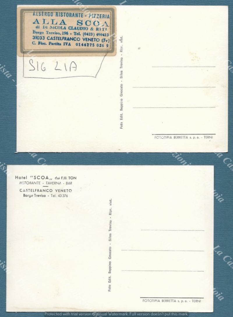 CASTELFRANCO VENETO, Treviso. Ristorante Scoa. 2 cartoline d'epoca formato grande, non viaggiata, anni 1970. (Rif.F5135)