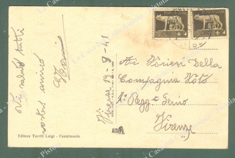 CASTELMUZIO, Siena. Saluti da. Cartolina d'epoca viaggiata 1941. Lieve ingialimenti a retro. (Rif.E3408)