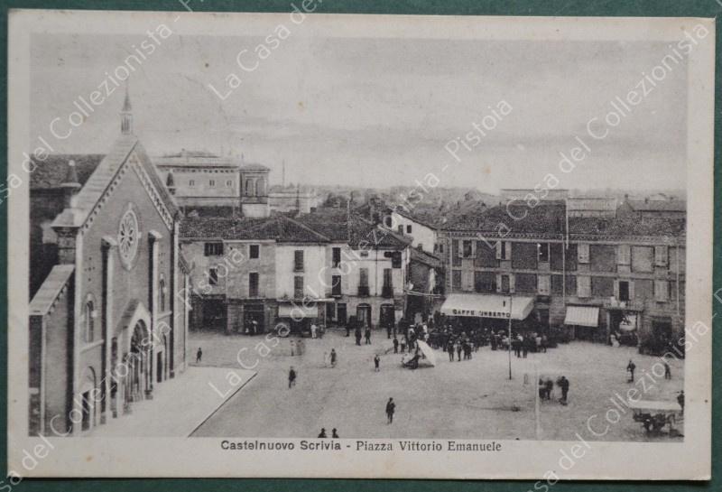 CASTELNUOVO SCRIVIA, Alessandria. Piazza V. Emanuele. Cartolina d'epoca viaggiata