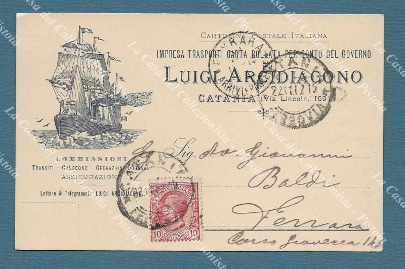 CATANIA. Impresa trasporti ARCIDIACONO. Cartolina commerciale viaggiata nel 1912. Ottima conservazione. (Rif.F2107)